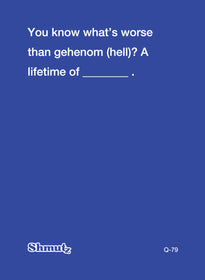 When we say our game is suitable for all ages, we mean it. Be confident when sitting down to a G-rated Jewish family game night that we keep it clean, so you don't have to worry about missing out on some kishka-destroying laughing fits. (We are not responsible for hospital bills caused by said laughter.)